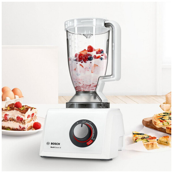Большая рабочая чаша, общий объем 3,9 л, возможность замешивания до 1,5 кг теста. Бленедр 1,5 л из высококачественного пластика Тритан.