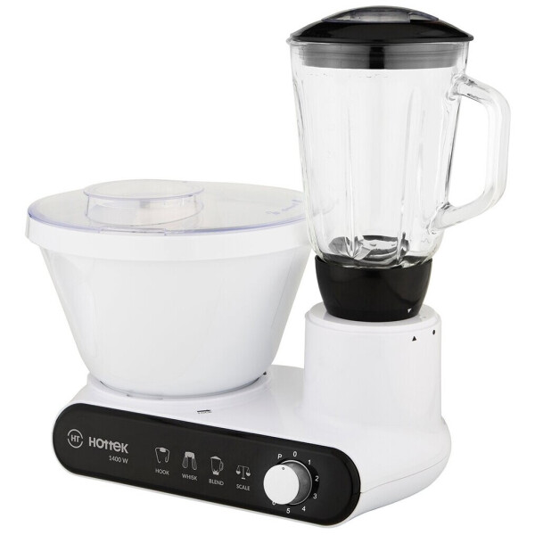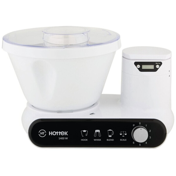 Планетарный миксер, блендер и кухонные весы - всё, что нужно современной хозяйке на кухне. Мощная, многофункциональная машина смешает, замесит, взобьёт и взвесит ингредиенты. В пластиковой чаше с планетарным вращением насадок (объём 5л) вы с лёгкостью сможете смешать нужные ингредиенты, а также замесить тесто любой сложности, даже пельменное. Чаша оснащена защитной крышкой с окном для добавления ингредиентов. В стеклянном стакане блендера (объём 1,5л) можно приготовить любимые коктейли, смузи и пюре. Здесь есть съёмные кухонные весы, которые измеряют вес в килограммах, граммах, унциях и фунтах.