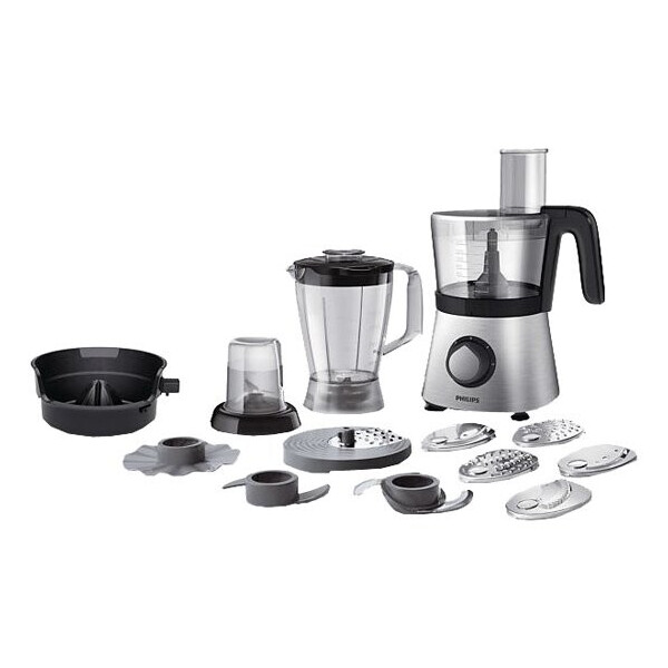универсальный нож, насадка для теста, эмульсионная насадка, терка, насадка для нарезки ломтиками, диск для нарезки соломкой общее число насадок: 12