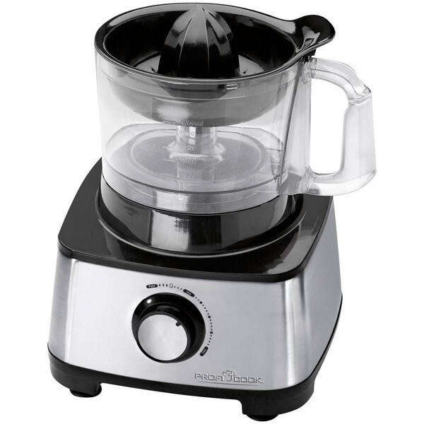 Мощный кухонный комбайн Profi Cook PC-КМ 1063 представляет собой многофункциональный аппарат, простой в управлении. Данный прибор состоит из нескольких устройств: измельчителя, цитруспресса, блендера. Емкость чаши, в которой происходит измельчение продуктов, достигает 1.2 л. Что касается емкости блендера, то в данном случае этот показатель составляет 1.75 л.