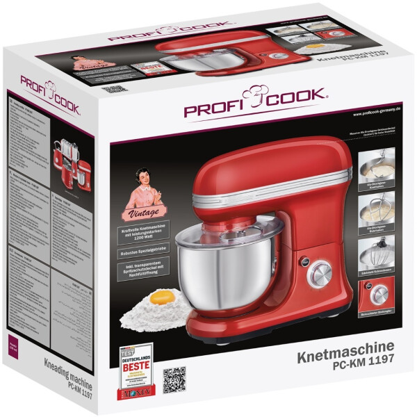 Добротный планетарный миксер от компании Profi Cook, который отлично подойдет для замешивания и взбивания большого количества теста и крема для тортов. Но все же в первую очередь он выделяется своим интересным дизайном, напоминающим ретро-приборы. Вы можете выбрать одну из двух предложенных расцветок красную или серую под металл, но обе они выглядят здорово и сделают устройство украшением любой кухни. Однако привлекательна модель не только своим дизайном. Она оснащена большой металлической чашей объемом 5 литров, в которой за раз можно замесить до 3 кг теста. Прозрачная съемная крышка защищает от брызг и позволяет прямо во время процесса добавлять ингредиенты через специальное отверстие. Мощности Profi Cook PC-KM 1197 в 1200 Вт хватит для выполнения задач любой сложности, а 6 скоростей и импульсный режим помогут подобрать необходимую интенсивность смешивания и взбивания в зависимости от типа продукта и конечной цели. Переключаются они плавно, не разбрызгивая содержимое чаши, с помощью поворотного регулятора с подсветкой. В комплект входят три металлические насадки: крюк для замеса теста, венчик и лопатка для перемешивания. А за устойчивость прибора во время работы отвечают ножки-присоски на дне корпуса.