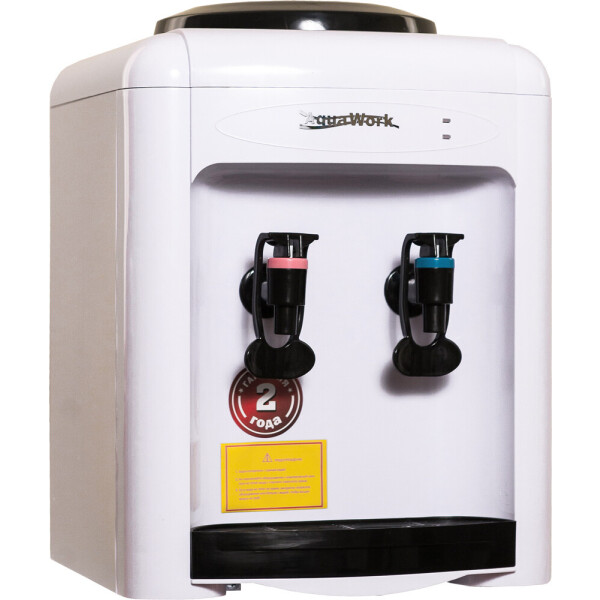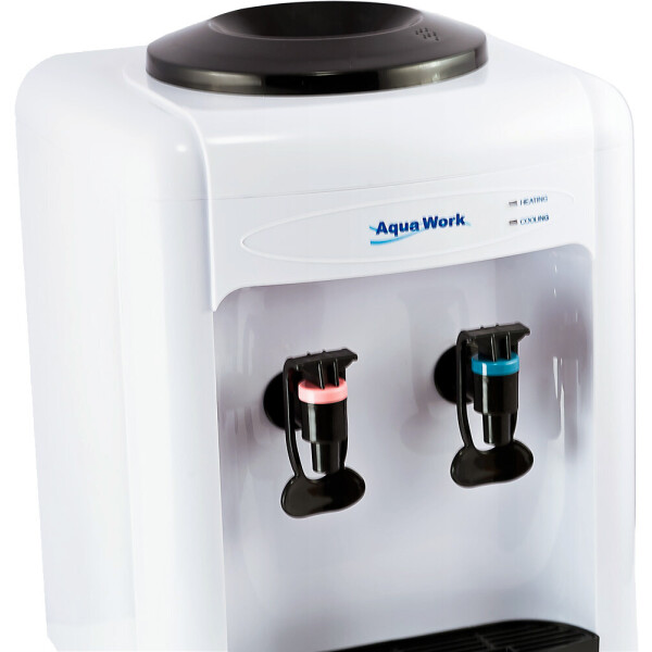 Aqua Work 0.7-TD – это настольный кулер, который оборудован двумя кранами для охлажденной и горячей воды. Краны поддерживают "нажим кружкой", что способствует более легкой добычи воды без риска обжечься. Модель поддерживает максимальную температуру нагрева 90 °С и охлаждения 12 °С. Мощность нагрева составляет 700 Вт, а показатель 70 В присущ для охлаждения.