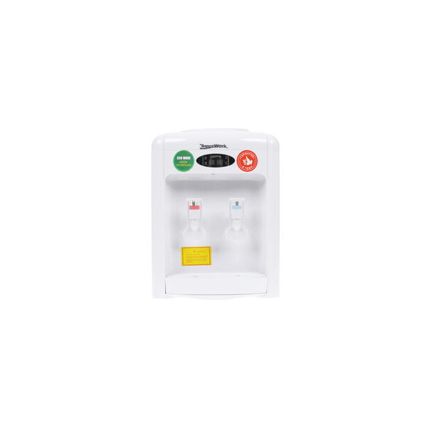 Диспенсер Aqua Work 36-TDN-ST привлекает внимание компактным белоснежным дизайном с размещением бутыли сверху. Прибор весит всего 3.4 кг и имеет размеры 31x43.5x29 см, благодаря чему легко перемещается и устанавливается на небольшую тумбу или стол. Предусматривается наличие функций эко и турбонагрева.