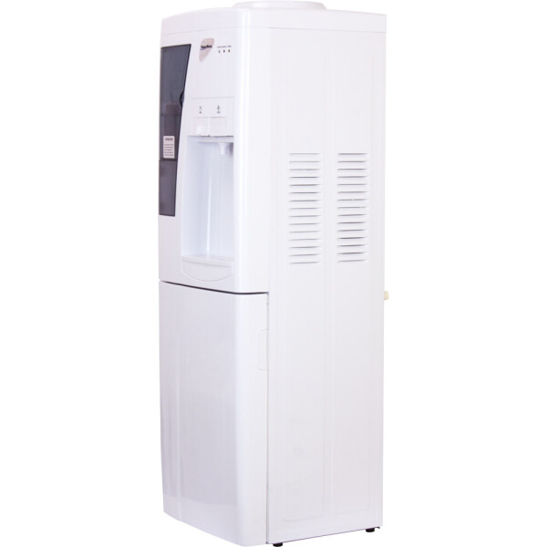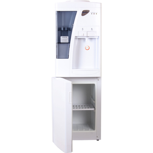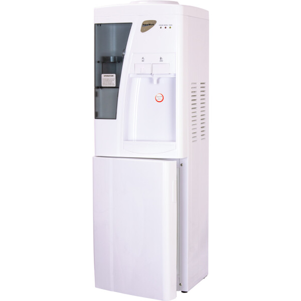 Напольный кулер для воды Aqua Work 3-W с электронной системой охлаждения, встроенным шкафчиком и стаканодержателем. Емкость шкафчика - 16 литров, это отличное место для хранения кофе, чая, сахара и других продуктов, которые не нуждаются в охлаждении.