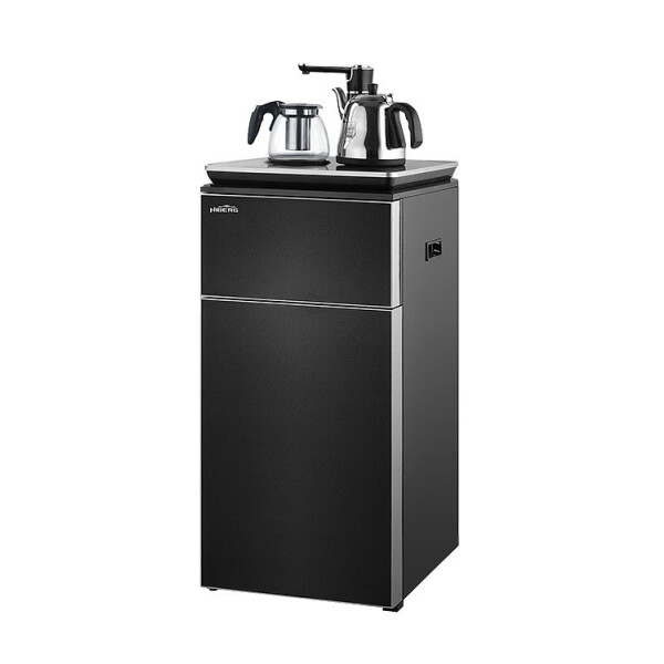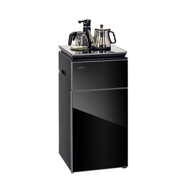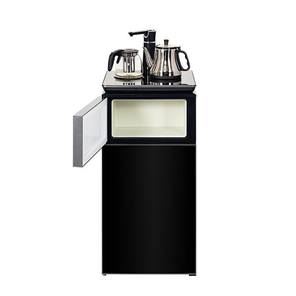 В комплекте с кулером поставляются электрический и заварочный чайники, располагающиеся на специальных подставках на верхней панели. Такой набор поможет с комфортом пить кофе и чай в любое время. Над отсеком для бутыли есть отделение с дверцей, в котором можно хранить полезные мелочи, например чайные пакетики и кружки.