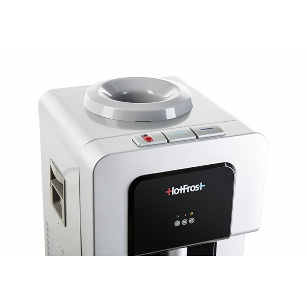 HotFrost V900 CS отличается нестандартным высоким «ростом», что сделает его использование весьма комфортным. Кроме этого, данный кулер отличается от других моделей тихим компрессором. На передней панели присутствует 3 кнопки подачи воды: почти ледяной, горячей и прохладной (примерно +15°C). В этом кулере также установлена кнопка подачи горячей воды с функцией защиты от детей, что делает пользование HotFrost V900 CS абсолютно безопасным для родителей и их маленьких чад.
