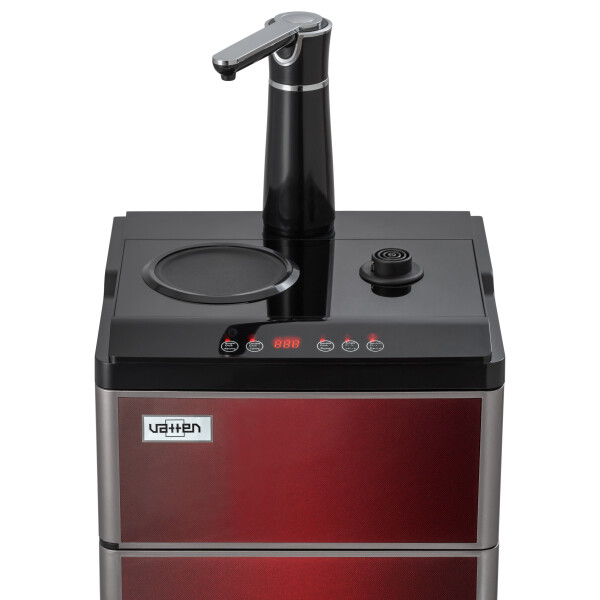Кулер оснащен двумя чайниками: для заварки чая и для кипячения воды. Чайник для заварки имеет свое ложе для подогрева и поддержания температуры. В чайнике для кипячения вода начинает нагреваться после двойного нажатия на кнопку нагрева. Нагрев отключается при достижении 100 С. Встроенный дисплей отображает текущую температуру воды. Если вода в чайнике остыла, можно включить нагрев соответствующей кнопкой.