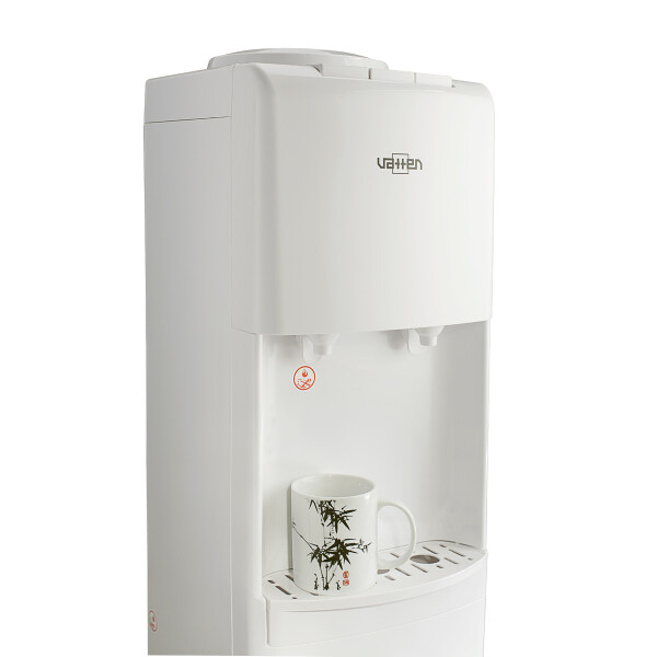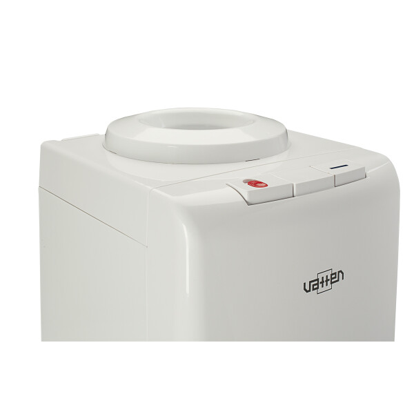 Кулер для воды Vatten V41WF с верхней загрузкой бутыли. Современный дизайн. Все панели изготовлены из качественного, устойчивого к ультрафиолету пластика. Два крана, управление кнопками - горячая и вода комнатной температуры. Кран горячей воды имеет защиту от детей. Без охлаждения. Без холодильника. Без шкафчика.
