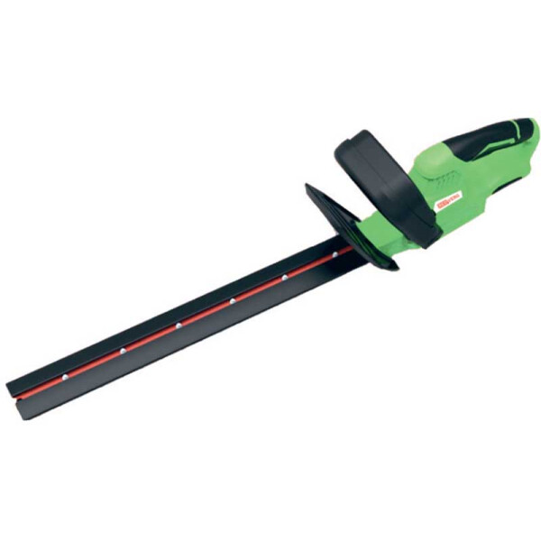 Аккумуляторный садовый кусторез RedVerg RD-HT18V предназначен для обрезки кустов, кустарников, живой изгороди и небольших деревьев. Принцип работы заключается в том, что расположенные на полотне режущие ножи совершают возвратно-поступательные движения. Ножи изготовлены из конструкционной рессорно-пружинной стали. Руки оператора и корпус инструмента защищены специальным щитком.