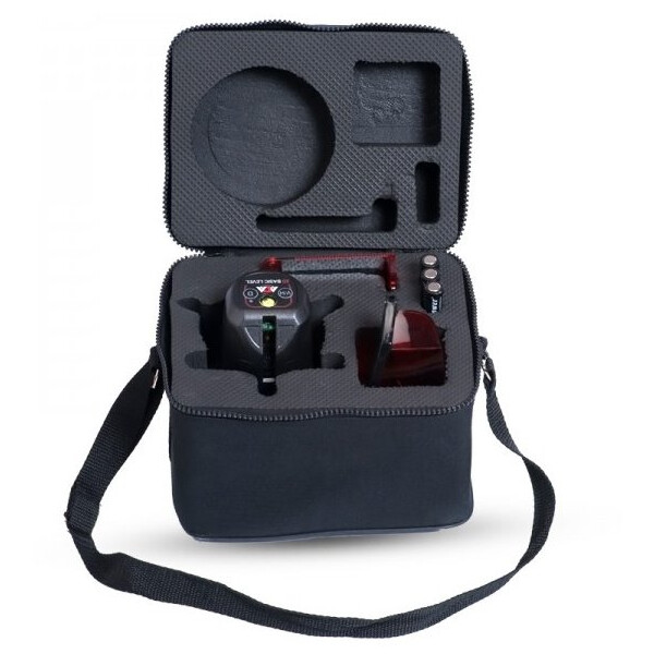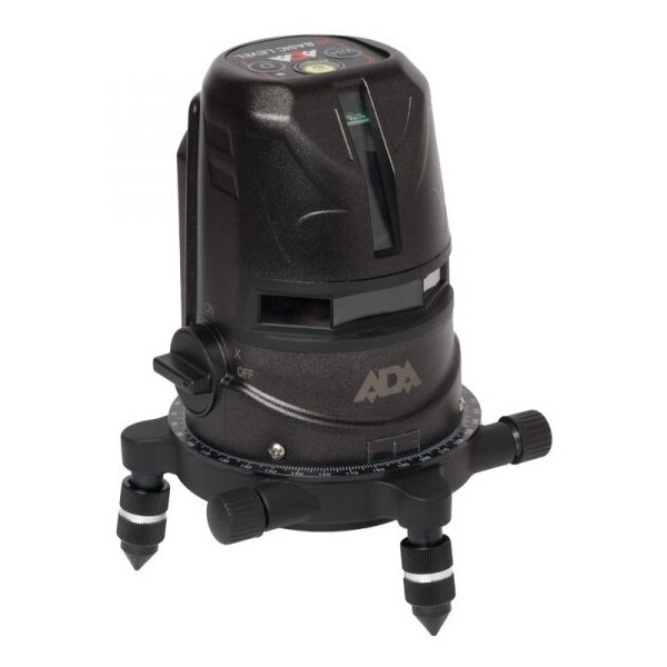Автоматический линейный лазерный нивелир ADA 2D Basic Level А00239 проецирует горизонтальную и вертикальную линии, а также лазерный отвес. Прибор обладает функцией самовыравнивания. При достижении угла наклона, превышающего диапазон выравнивания, луч начинает мигать и звучит характерный сигнал. Предварительная настройка точности установки осуществляется при помощи пузырькового уровня с подсветкой и встроенного в основание болтов. Основание является поворотным с делениями каждые 15 градусов, что делает возможным наведение вертикального луча в нужную сторону. Специальный индикатор предупреждает о низком заряде батареи.