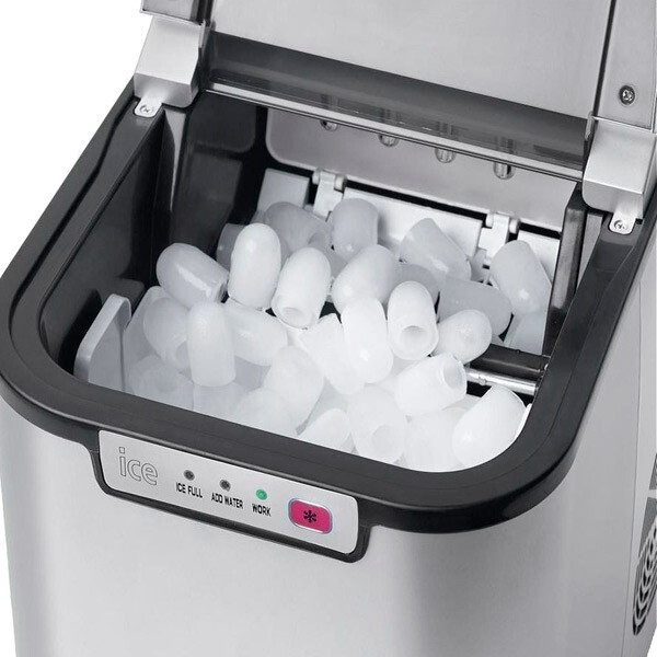 Компактный льдогенератор Bomann EWB 1027, не требующий подключения к источнику водоснабжения, производит за сутки примерно 10-15 кг льда. За один цикл, то есть примерно за 10 минут, льдогенератор готовит девять кубиков льда, что составляет 90 граммов. При наполнении контейнера для льда и при опорожнении резервуара для воды объемом 2,2 литра раздается звуковой сигнал. Контролировать процесс приготовления можно с помощью светодиодных индикаторов режимов. После завершения программы прибор автоматически выключается. Льдогенератор Bomann EWB 1027 может использоваться для приготовления льда не только в домашних условиях, но и в ресторане или баре..