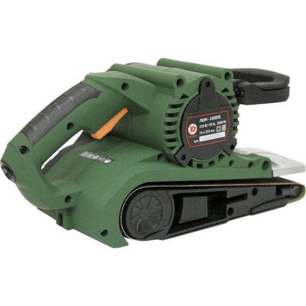Ленточная шлифмашина Калибр ЛШМ-1000УЕ 00000061903 предназначена для шлифования деревянных, пластиковых и металлических поверхностей, а также для удаления лакокрасочных покрытий. Она поддерживает регулировку скорости движения ленты, что позволяет настроить инструмент практически под любой материал. Мощный двигатель имеет двойную изоляцию, благодаря чему достигается максимальная безопасность при работе. Пылесборник, входящий в комплект поставки, служит для сбора шлама и пыли, образующейся при шлифовании.