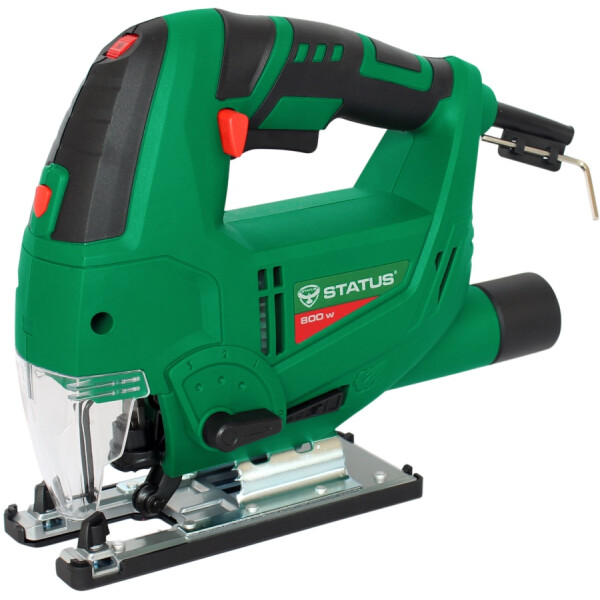 Лобзик STATUS JS800 - 800 Вт,800-3000 ход/мин,длина хода штока 22мм,max толщина пропила:дерево 100мм,сталь 10мм. Совместимо с пилками Т- и U- образными хвостовиками.Маятниковый ход,система быстрой замены полотен,лазерный маркер,обдув зоны реза с возможностью отключения, эргономичная обрезиненная рукоятка. В комплекте: параллельный упор, накладка подошвы,патрубок пылеотсоса, ключ.