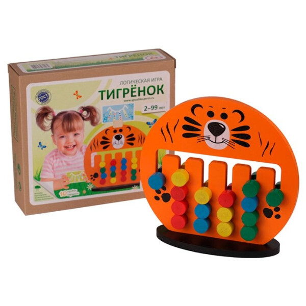 Настольная игра "Тигренок" от бренда "Краснокамская игрушка" поможет ребенку развить логику,научиться думать самостоятельно и решать разные задачки. В наборе есть десять карточек с интересными логическими заданиями, которые малышу предстоит решить. Взяв карточку, он должен по ней правильно выставить цветные детали деревянной игрушки, выбрав самый простой и верный способ решения задачи.