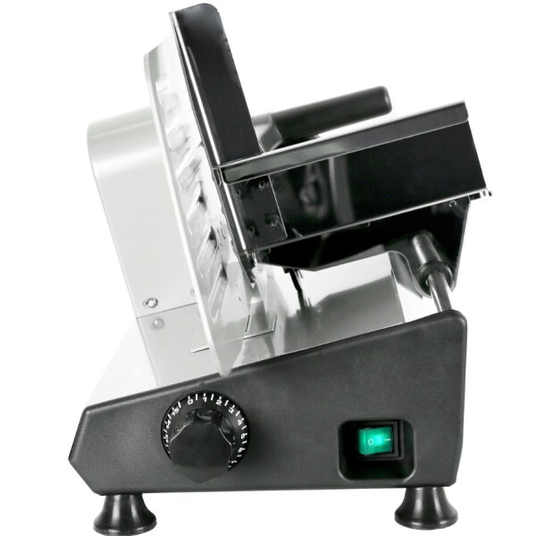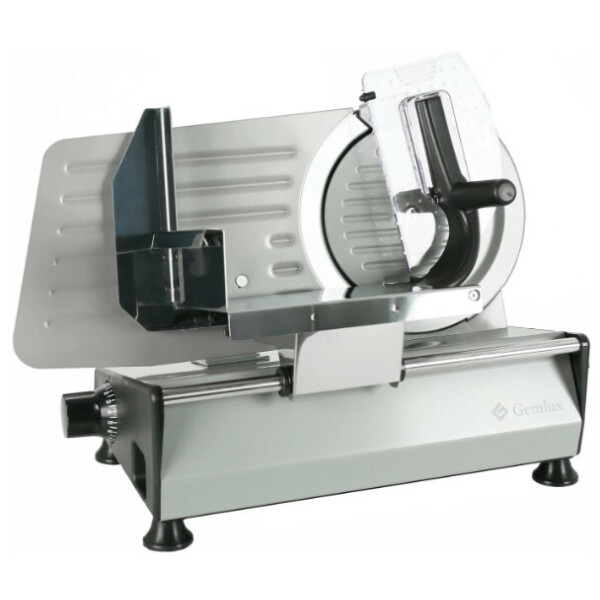Ломтерезка GEMLUX GL-MS-220 полезное приспособление для кафе и ресторанов. С помощью этого прибора вы легко нарежете сыр, колбасу, огурец и прочие продукты с толщиной нарезки до 1.5 см. Вы можете регулировать толщину ломтиков, но использовать устройство непрерывно только 5 минут.
