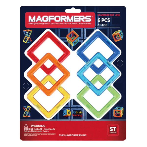 Набор Magformers 6 отлично подойдет для тех, кто только начинает знакомиться с магнитными конструкторами Магформерс. В комплект входят самые базовые фигуры — квадраты. С ними ребенок легко научится строить несложные модели. Можно начать с аппликаций на плоскости, постепенно переходя к постройке объемных фигур, например, куба. Набор поможет ребенку получить представления о плоских и объемных геометрических фигурах.