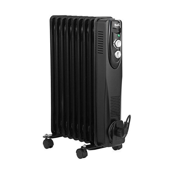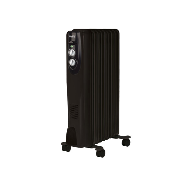 Масляный радиатор Ballu BOH/CL-09BRN – черный стильный обогреватель, который может стать отдельным элементом интерьера благодаря своему внешнему виду. Этот радиатор на 9 секций устанавливается на полу и перемещается при помощи ручки, расположенной на корпусе, и колесиков, которые входят в комплект.