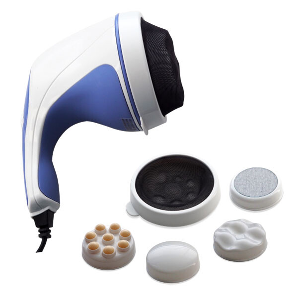 Массажер для тела, 4 насадки для разных видов массажа + защитная сетчатая насадка, питание от сети 220 В