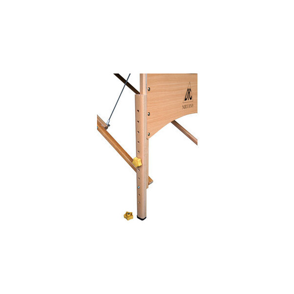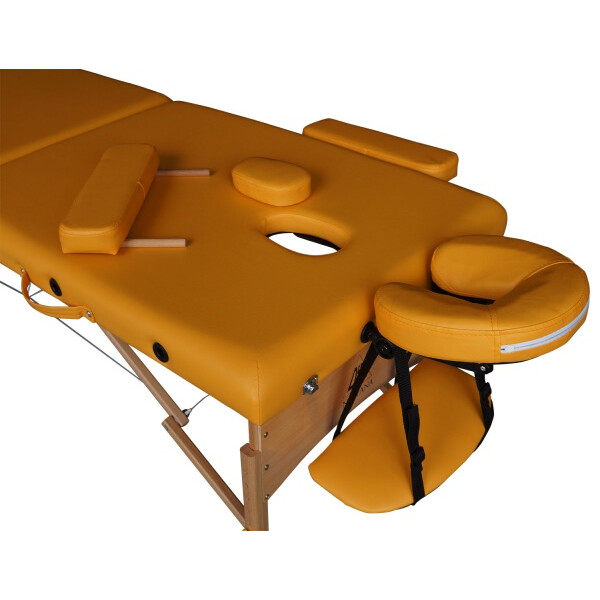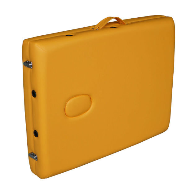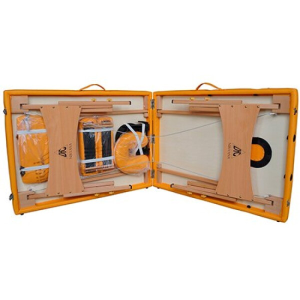 Модель имеет складную конструкцию, состоящую из двух секций. При необходимости стол легко складывается и не занимает много места в багажнике автомобиля, что позволяет брать его на выезд к клиентам. Изделие весит всего 13 кг, поэтому возможна переноска в руках. Мастер может самостоятельно регулировать высоту стола так, как ему удобно. Предусмотрено 11 вариантов положения, благодаря чему обеспечивается полый доступ к клиенту для проведения массажа. Стол отличается исключительной надежностью, способен выдержать нагрузку до 250 килограмм. Используется высокопрочный и долговечный наполнитель из поролона.