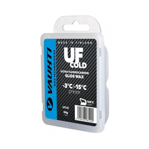 Ультрафтрористый парафин UF COLD, синий. Специальный продукт для холодного снега, работает на всех типах снега. Оптимизированное содержание фторуглерода и особый состав делает его чувствительным и быстрым, но в то же время долговечным на сухом холодном снегу.Упаковка: 45 г. UF - новая линейка парафинов, в которой оптимизирован состав и содержание фторсодержащих добавок. Состав был выбран после точного лабораторного анализа и многочисленных полевых испытаний. Подходит для различных типов снега.