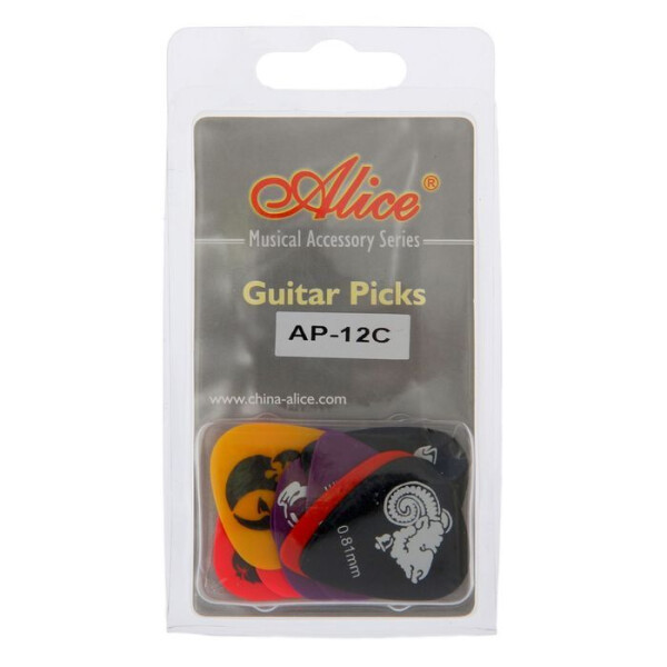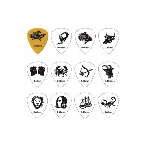 Набор содержит 12 медиаторов толщиной 0,58 мм., 0,71 мм. и 0,81 мм., стандартной формы, по 4 штуки каждой толщины.