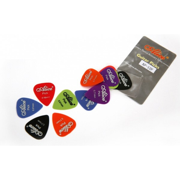 Набор содержит 12 медиаторов толщиной 0,58 мм., 0,71 мм. и 0,81 мм., стандартной формы, по 4 штуки каждой толщины.