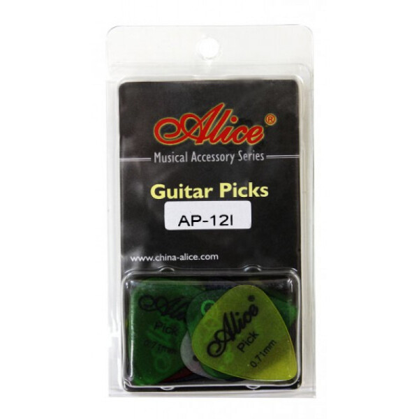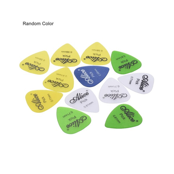 Набор содержит 12 медиаторов толщиной 0,58 мм., 0,71 мм. и 0,81 мм., стандартной формы, по 4 штуки каждой толщины.
