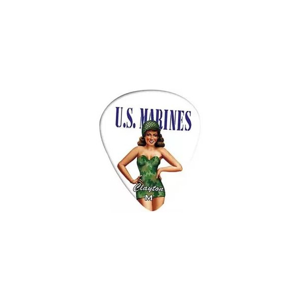 Набор медиаторов CLAYTON серия AMERICAN HOTTIES. На серии медиаторов «Горячие американки» изображены девушки в ретро-стиле, одетые в форму одного из пяти американских родов войск. Медиаторы изготовлены из материала Delrin белого цвета.