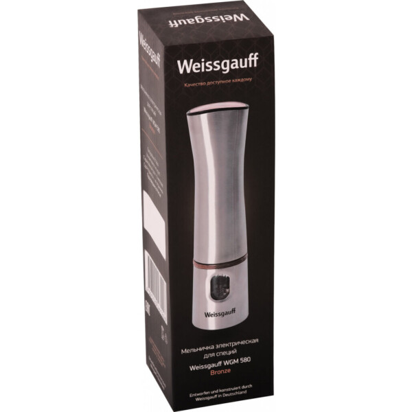 Дизайн, выполненный в оттенке розовое золото, делает этот штопор не только функциональным устройством, но и по-настоящему восхитительным аксессуаром, сочетающим в себе высокий стиль и благородство вашего вкуса! Изящная форма и компактный размер всего 215х56х56 мм, воплощают в себе истинное единство эргономичности и визуальной эстетики! Корпус из высококачественной нержавеющей стали, обеспечит ту самую легендарную надежность и долговечность, которая так свойственна всем устройствам от Weissgauff! Керамические жернова, с фантастической эффективностью справятся с измельчением перца, морской соли и других специй и приправ, не подвергаясь при этом воздействию коррозии и стирания!Регулировка степени помола - особенна удобна, когда вам необходимо подобрать оптимальный вариант измельчения специй для различных блюд!