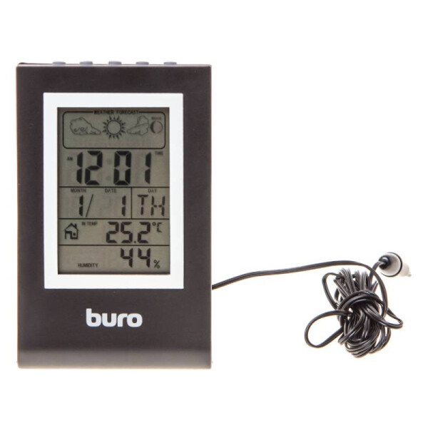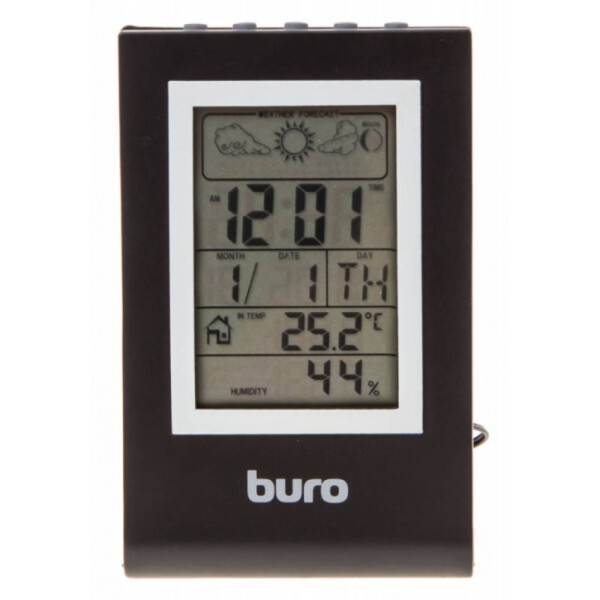 Метеостанция Buro H117AB - полезное и многоцелевое устройство для любого дома. Даст вам точную информацию о погоде, отчёт о температуре, точные показатели времени. Календарь, прогноз погоды, точное время, будильник и фазы луны – теперь на одном устройстве!