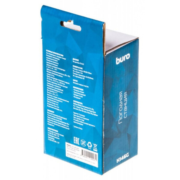 Модель Buro H146G показывает актуальные данные в диапазоне -50…+70 градусов и 20-95% влажности. Устройство оснащено выносным датчиком с беспроводным типом действия. Допускается одновременное подключение до трех датчиков, действующих на расстоянии до 80 метров от метеостанции.