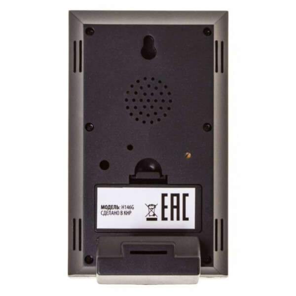Метеостанция Buro H146G представлена в компактном серебристо-черном дизайне, удобном благодаря возможности настольной или настенной установки. Прибор считывает изменения окружающей среды в комнате и на улице. Используется для измерения температуры и уровня влажности.