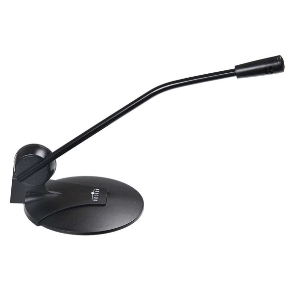 Микрофон для компьютера на гибкой ножке. Специальная подставка с поворотным держателем позволяет удобно расположить микрофон на столе. Дополнительный держатель с клейким слоем обеспечивает крепление на рамку монитора или другую вертикальную поверхность.