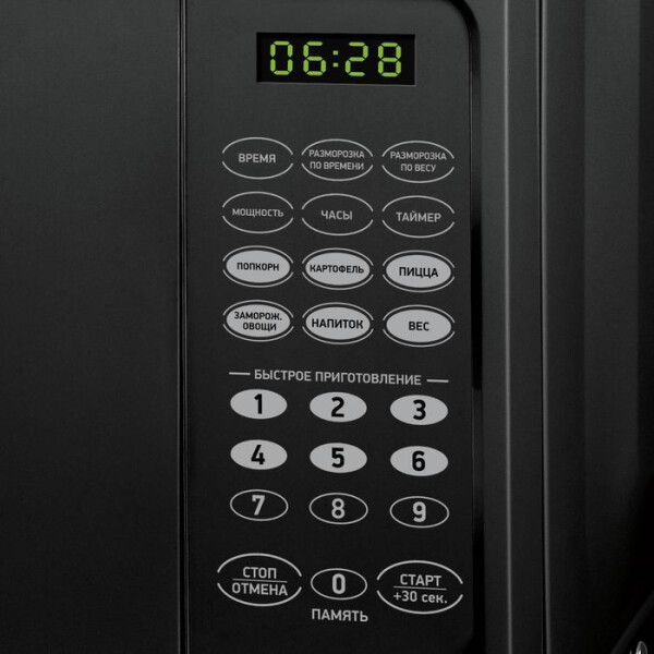 Черная микроволновая печь 20MWS-727S/B станет идеальным дополнением к кухне, выполненной в темных тонах, или составит контраст светлому интерьеру. Благодаря функциям разморозки, приготовления и разогрева она способна превратить начальные ингредиенты или полуфабрикаты в полностью готовое блюдо. Таймер на 99 минут и 10 уровней мощности позволяют задать точные настройки. Сохранить свои часто используемые программы приготовления можно при помощи функции Память, а для наиболее общепринятых популярных