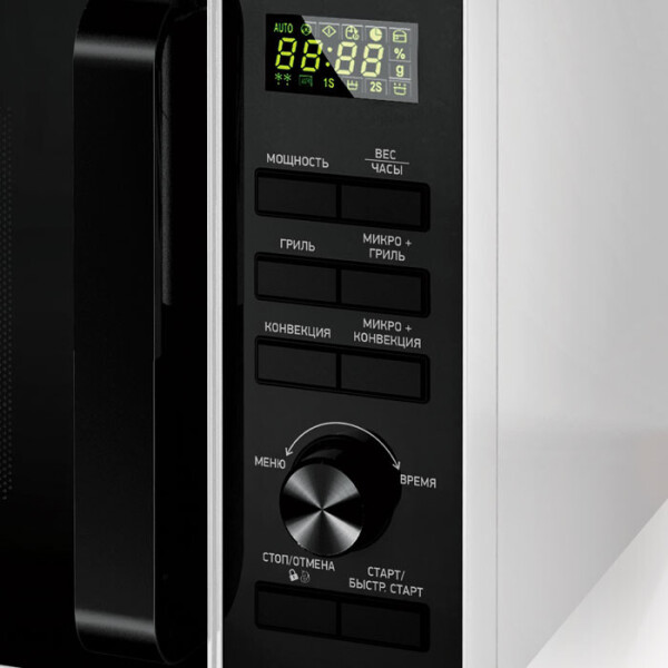 Микроволновая печь 25MWC-992T/WB выполена в классическом стиле с черной фронтальной панелью и белым корпусом. Это позволяет ей вписаться в различные варианты оформления кухонного интерьера. Номинальный внутренний объем в 25 литров и наличие гриля позволяют готовить птицу целиком и получить прекрасную хрустящую корочку. Любители выпечки оценят режим конвекции, позволяющий использовать микроволновую печь как традиционный духовой шкаф. Доступны автоматические и комбинированные режимы приготовления блюд. Функция блокировки панели управления убережет от небезопасного взаимодействия ребенка с электроприбором. LED-дисплей обеспечивает дополнительное удобство использования данной модели.
