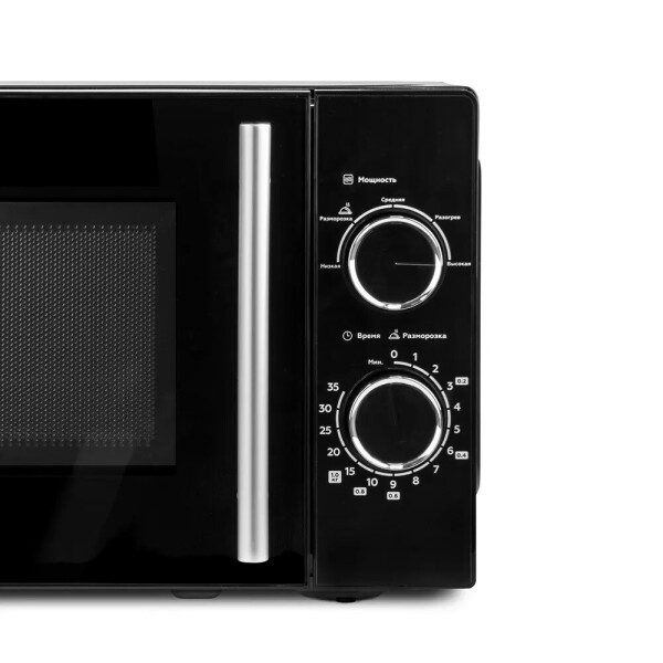 Управляется микроволновая печь BQ MWO-24010SM/B посредством поворотных переключателей. Имеется таймер на 35 минут для приготовления пищи.