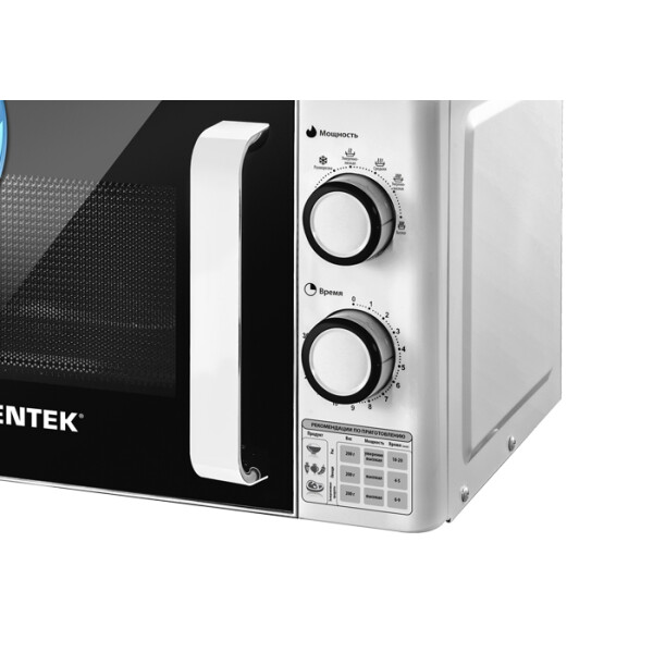 В модели Centek CT-1585 установлены поворотные переключатели и кнопки, при помощи которых осуществляется выбор мощности и желаемая программа работы. Еще одно достоинство микроволновой печи заключается в наличии встроенного таймера, который оповестит вас об окончании процесса приготовления, размораживания или разогрева блюд. Кроме того, он автоматически приостановит работу устройства, избавив вас от лишних хлопот.