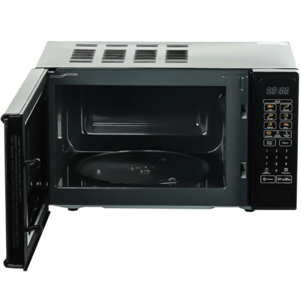 Микроволновая печь оборудована круглым стеклянным поддоном, диаметр которого 24.5 см. Он размещается на роликовой подставке, а при необходимости легко вынимается из микроволновки и моется.