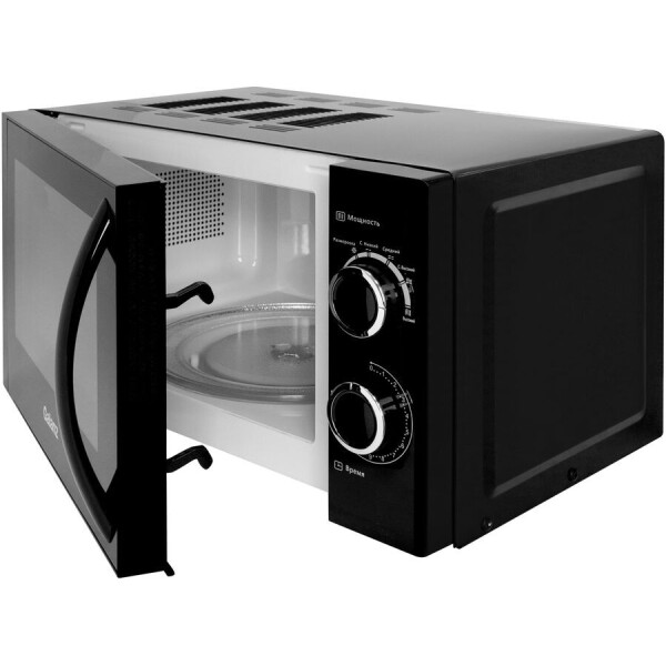 Мощность микроволн составляет 700 Вт, при потреблении энергии 1200 Вт. Поддон изготавливается из закаленного стекла, имеет диаметр 24.5 см. Во время работы он плавно вращается вокруг своей оси, что обеспечивает равномерный подогрев пищи. Изнутри камера покрыта эмалированной сталью, которая легче всего поддается очистке от жира и загрязнений. Объем камеры составляет 20 л.