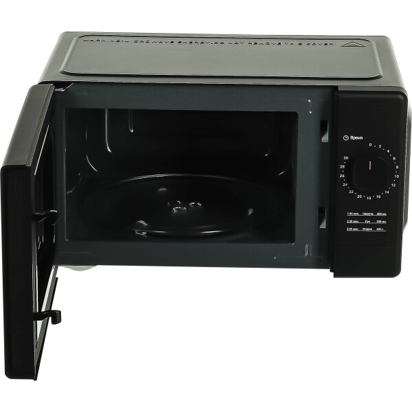 Прочное внутренне покрытие легко очищается от остатков пищи. Навесная дверца открывается кнопкой, а все параметры задаются при помощи поворотного переключателя.