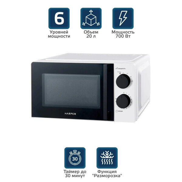Простая в эксплуатации и практичная в обиходе, компактная по размерам отдельностоящая микроволновка Harper HMW-20SM01 понравится любой хозяйке.