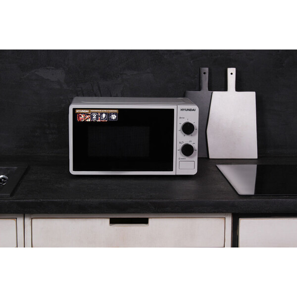 Компактная модель микроволновой печи Hyundai HYM-M2002 не займет много места на вашей кухне, зато будет верным помощником в ежедневных кухонных заботах. Вы сможете разогревать обед, размораживать мясо и даже готовить многие блюда автоматически без своего участия. На корпусе имеется панель, на которой есть два поворотных переключателя. Нижний задает мощность, а верхний регулирует время приготовления.
