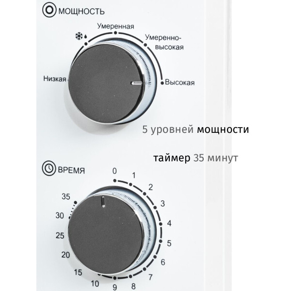 Микроволновая печь JVC JK-MW134M/135M/136M с таймером на 35 минут, 5 уровнями мощности и авторазмораживанием по времени быстро и эффективно разогреет, разморозит или приготовит продукты для вашего стола.