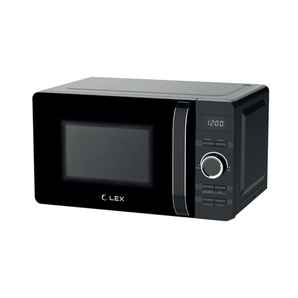 Микроволновая печь LEX FSMO D.03 BL представлена в лаконичном черном дизайне с устойчивыми ножками и удобной дверцей, открывающейся с помощью ручки. Камера вмещает 20 л, а поворотный стол со стеклянным блюдом 24.5 см гарантирует быстрый и равномерный прогрев. Для управления программами используются подписанные кнопки и поворотный регулятор.