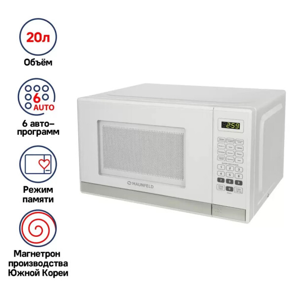 Микроволновая печь Maunfeld MFSMO.20.7 SGW белый это стильный элегантный дизайн и удобный функционал.