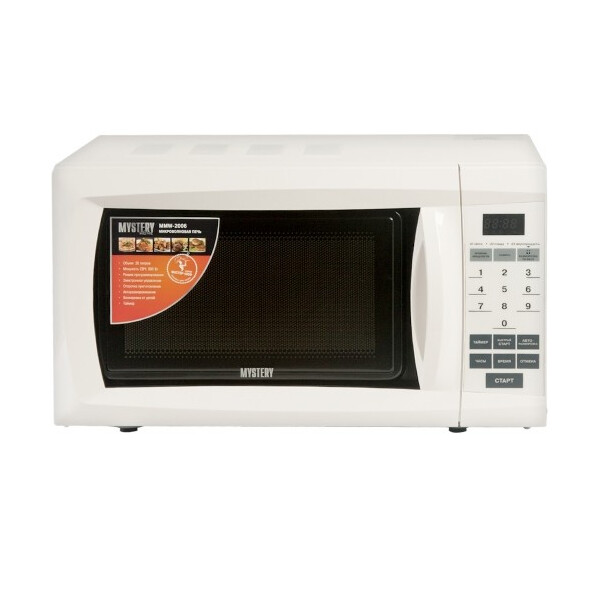 Mystery MMW-2006 обладает повышенной до 800 Вт мощностью, благодаря чему качественно справляется со своими обязанностями. На фасаде микроволновки присутствуют сенсорные переключатели, а также компактный дисплей.