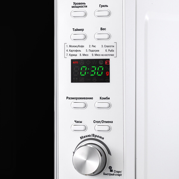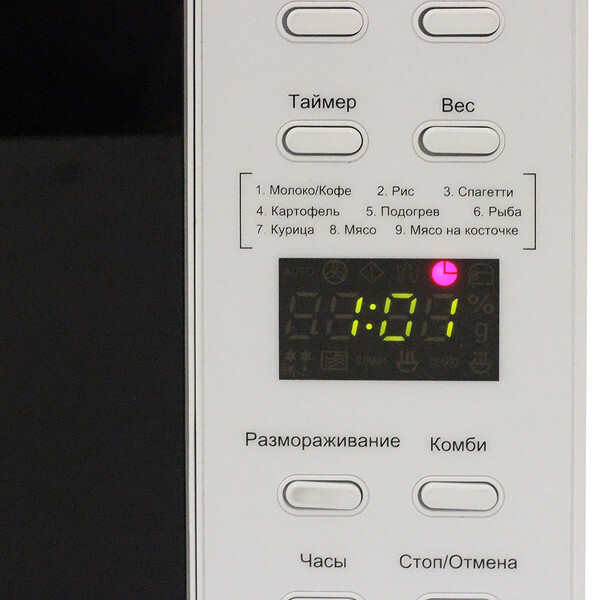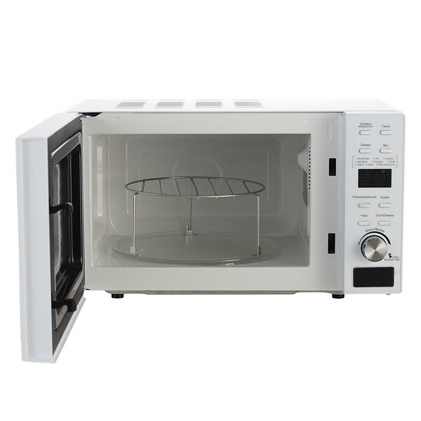 Прибор дает прекрасную возможность не только быстро подогревать, но и размораживать продукты. Более того, вы сможете готовить полноценные блюда, не прилагая никаких усилий. Этому способствуют встроенные программы приготовления. Есть возможность готовить и на гриле – запекайте птицу, мясо и овощи на специальной решетке, которая включена в комплектацию бытового прибора.