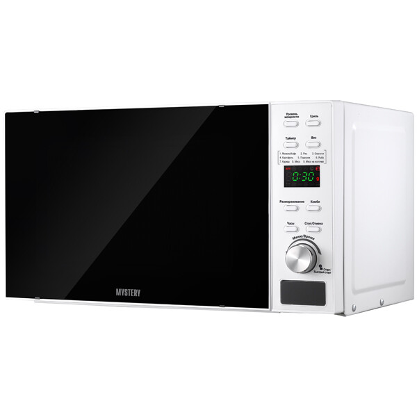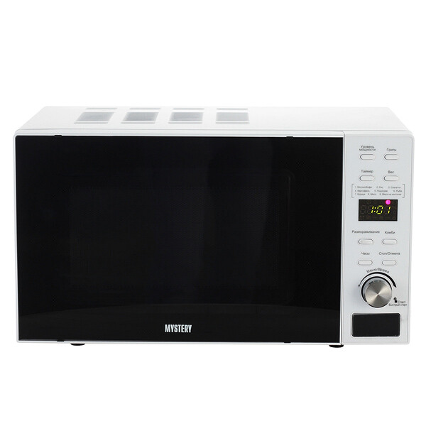 Освоить микроволновую печь Mystery MMW-2015G и беспрепятственно использовать ее каждый день у вас не составит труда, т. к. она оборудована интуитивно понятной механической панелью управления, которая сочетает в себе тактовые и поворотные переключатели. Интеллектуальный цифровой дисплей позаботится о том, чтобы вы всегда были осведомлены, сколько времени осталось до окончания выполнения заданной программы. Встроенный таймер дает возможность установить его на солидный период. Максимальное время, в течение которого модель Mystery MMW-2015G может работать в автоматическом режиме, составляет 1 час 35 минут.