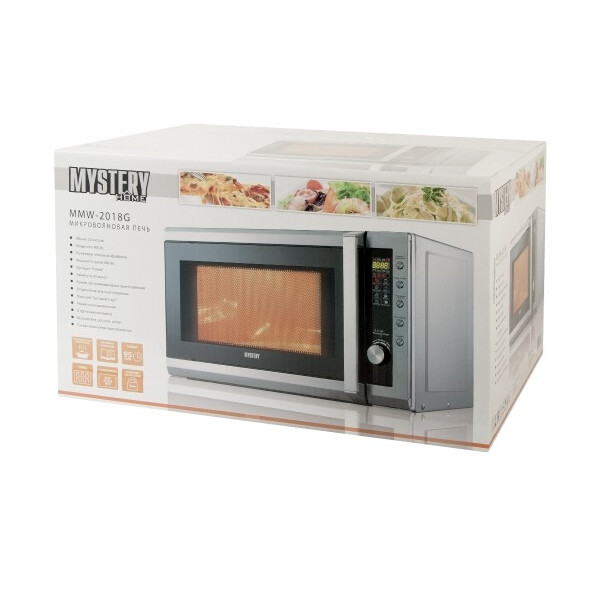 Микроволновая печь имеет гриль мощностью 900 Вт. Не менее полезной является возможность автоматической разморозки продуктов. В целях безопасности Mystery MMW-2018G оснащена функцией блокировки от детей.