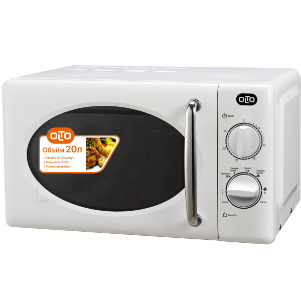 Микроволновая печь Olto MS-2002M обладает внутренним объемом в 20 л, а диаметр поддона ее – 24.5 см. Эмалированная сталь стала внутренним покрытием камеры, что делает ее легкой в очищении, так вы легко сможете удалить жиры и накипь, чтобы поверхность радовала вас безупречной чистотой. Мощность микроволн составляет 750 Вт – более чем достаточно, чтобы вы могли разморозить продукты и разогреть их быстро и равномерно. Olto MS-2002M оснащена таймером на 30 мин, что позволит вам полностью контролировать процесс.